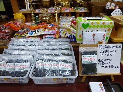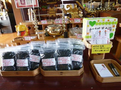 今回は「義捐金千円入れて頂くと、ワカメ4袋入りをプレゼント!」で、お堂に置いておきました。
