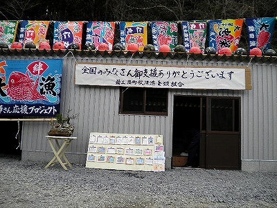 御礼の電話をしたときに漁師さんが「被災した後、皆さんから浮き玉を頂き、おかげで仕事を再開できました。海に浮かべた皆さんの「頑張れ!」「応援してます!」のメッセージ入りの赤い浮き玉を頼りに海に向かい、仕事に励みました。おかげでこうして仕事が出来ています。ありがとうございました!」