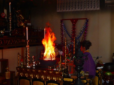 皆さんがお堂に来られて、ひと月のご守護のお礼をいいます。そして来月もご守護を頂ける様にと護摩修法でお願いをします。