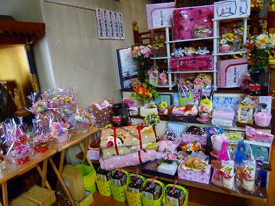 お堂の神殿半分は、こうして景品で埋まっております~(^o^)/