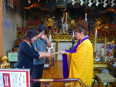 今回はちょうどお不動様の日に近かったので「そうだ、信者さんの前でお渡ししよう^^」と、施設長さんに来て頂き、皆さんの前でお渡ししました。