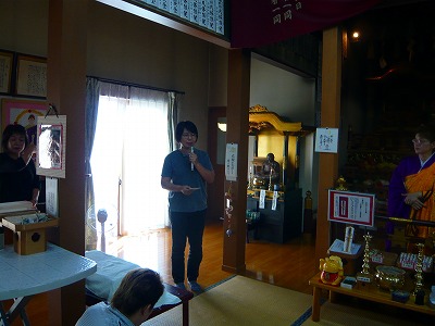 施設長さんが、信者さんにお礼をお伝えしています。