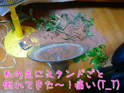 突然気が付いたらスタンドごと私の太ももに観葉植物が倒れてきました~@@@