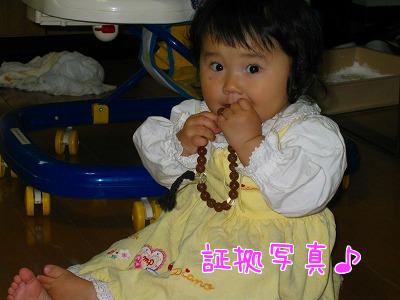 ほら、おじゅずをしっかり持ってるでしょ~(^o^)/ ホホホ。。。この証拠写真を大きくなって嫌がったら・・見せないと・・笑