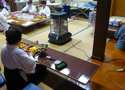 今日はやっと仕上げの日。さすがに私達だけでは出来ないので、何人かの行者さんにお手伝いをして頂きました。4時間ほど、みんなで一生懸命に手作りしました!