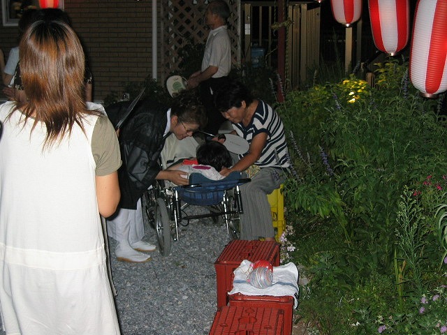 そんな美紀ちゃんが、今年のお不動様の盆供養にいきたいと自分から言ったそうです。連れて行ってもいいですか?とお母さんに尋ねられ、(ぜひ どうぞ!お会いしたいわ^^)と待ちわびていました。 ちょうどお経が終わり 外で盆踊りが始まった頃に美紀ちゃんは来ていました。