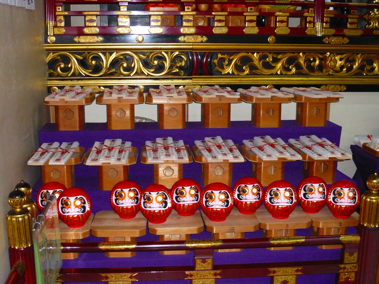 そして、一年過ぎ、願いの叶った方々が、だるまさんをお堂に御礼をこめてもってこられ、お堂の窓庭に飾られます。